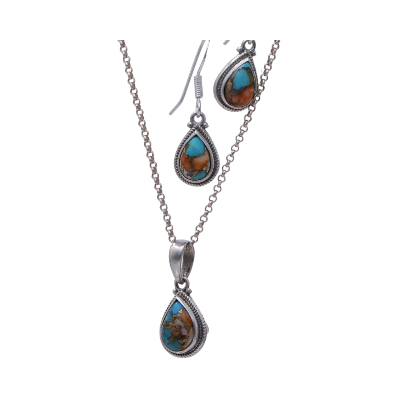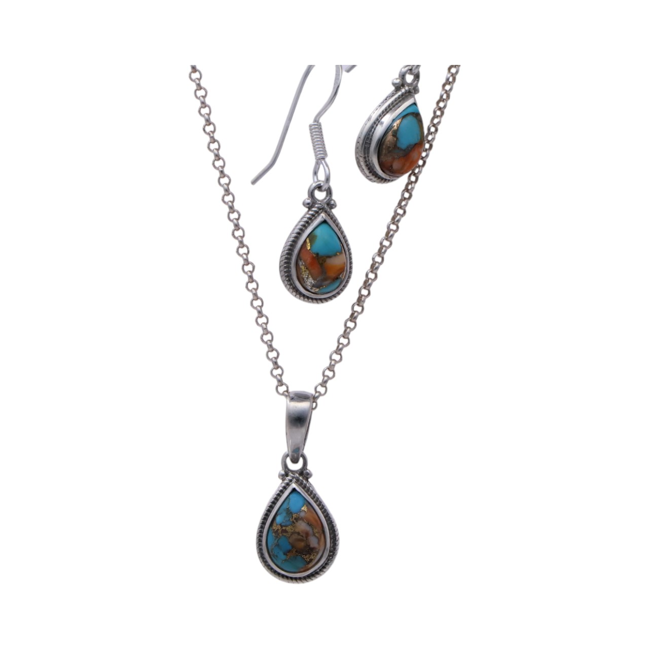 Stunning Oyster Copper Turquoise Tear Drop Set: Pendant and Earrings | Handcrafted for Timeless Style