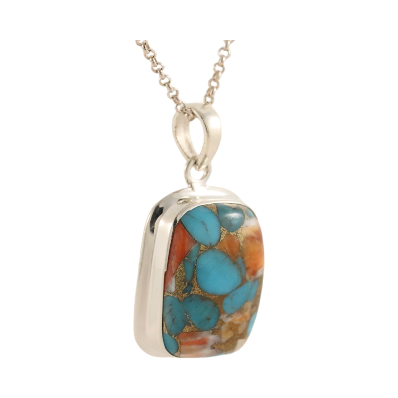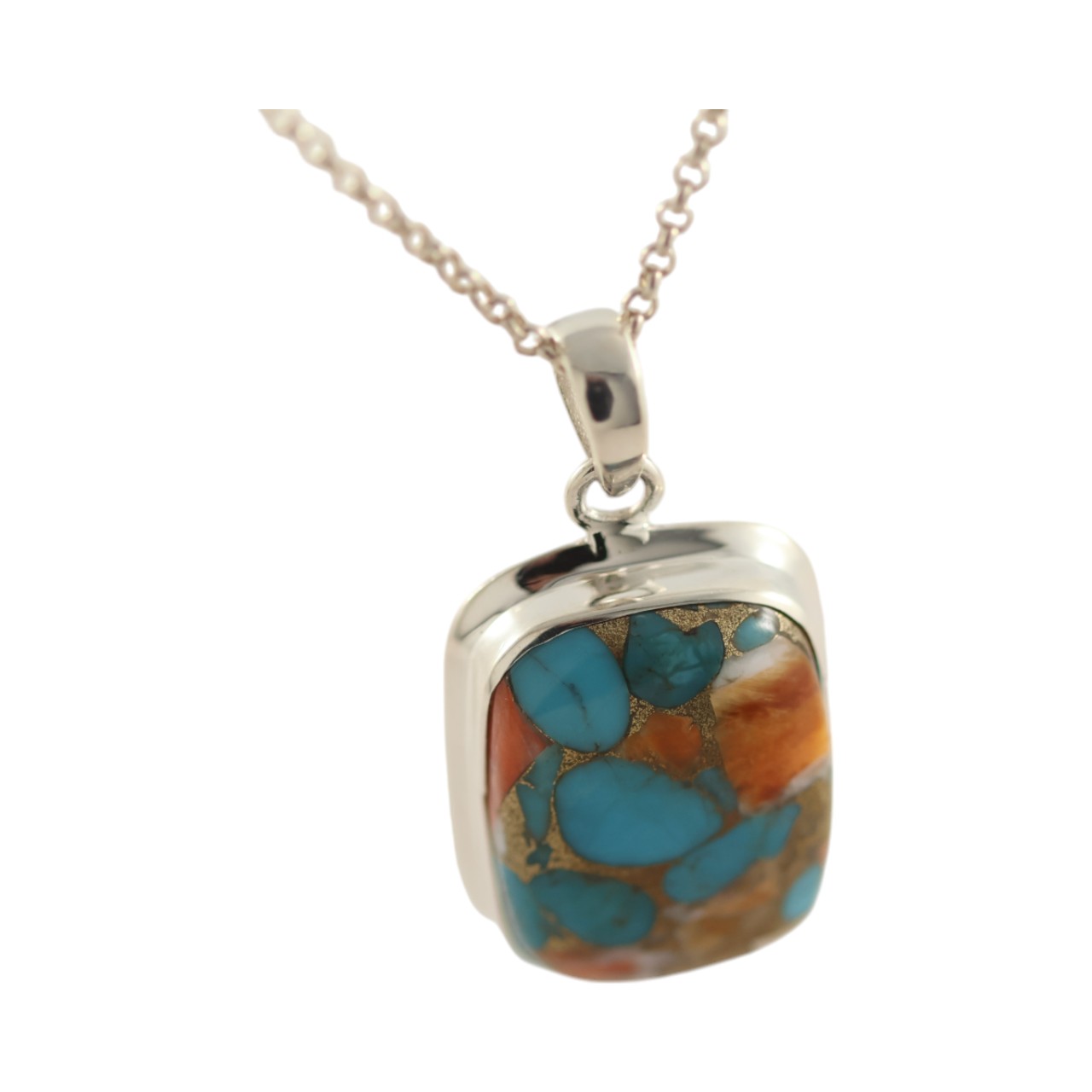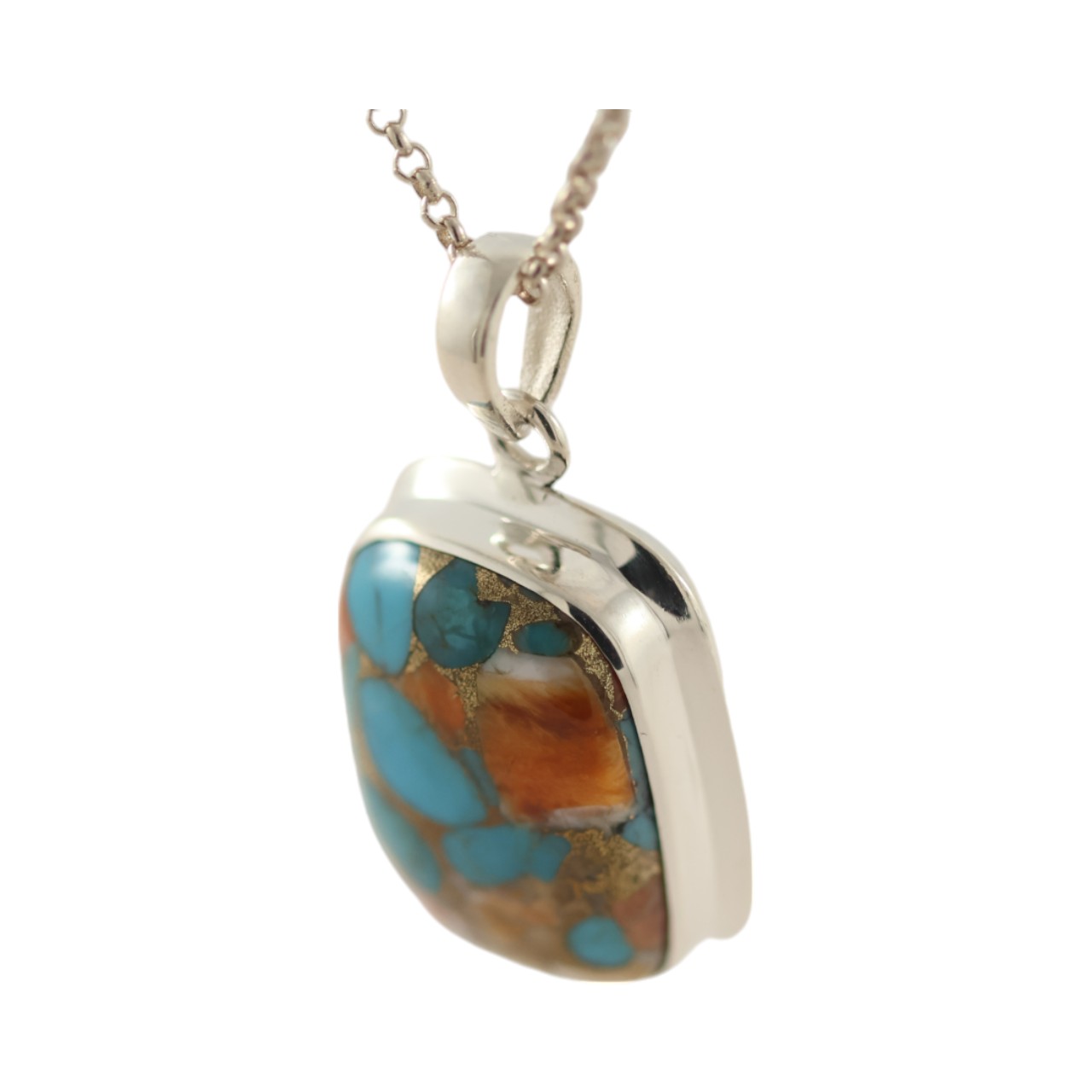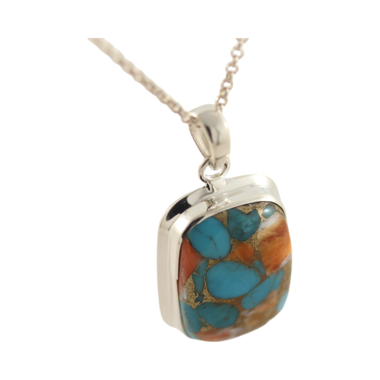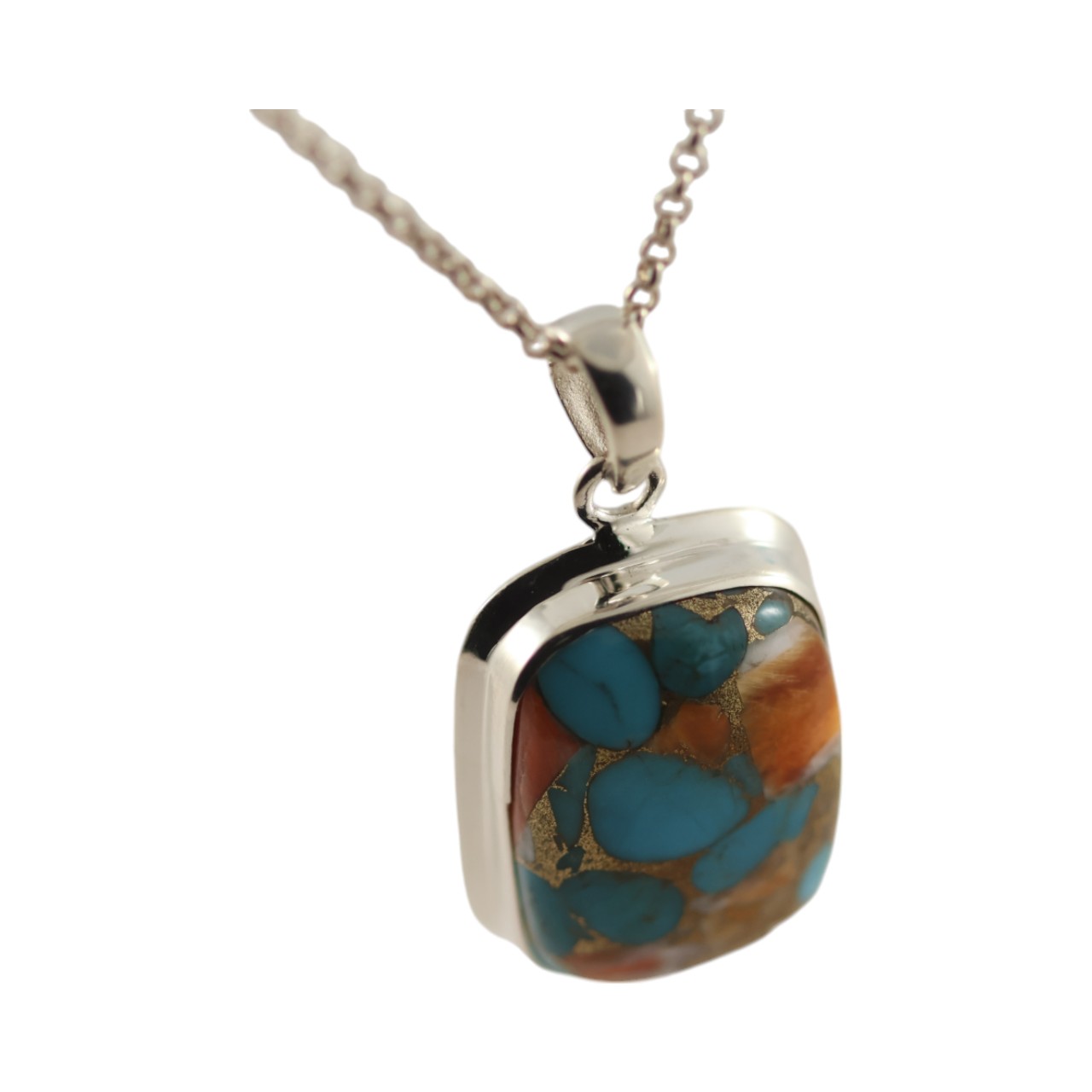 Introducing the Oyster copper turquoise Crystal Pendant Sterling Silver - a true masterpiece that combines the magnificent powers of crystals with the elegance of sterling silver. This pendant will effortlessly elevate any outfit and capture the hearts of crystal lovers. Handcrafted with precision, this pendant features a mesmerizing oyster copper turquoise crystal at its center, emitting soothing energies that promote peace and balance in your mind and spirit. Its intricate sterling silver frame adds a touch of glamour and exquisite detail, making it a statement piece that will undoubtedly turn heads. Not only is this pendant visually striking, it also carries numerous benefits such as boosting your confidence and enhancing your communication skills, making it a must-have for any social or professional setting. Its versatile design allows it to be paired with any outfit, whether it's a casual day out or a formal event. Experience the harmonious blend of energy and style with the Oyster copper turquoise Crystal Pendant Sterling Silver. Indulge in its majestic beauty and feel the positive vibes it brings.