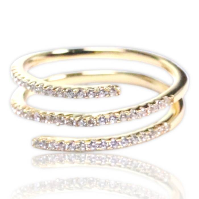 18K Gold Plated Sterling Silver Spiral Ring with Cubic Zirconia – Elegant Women’s Jewelry